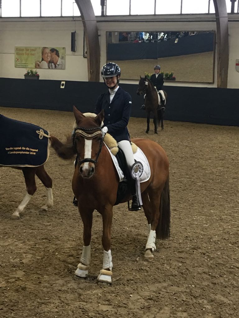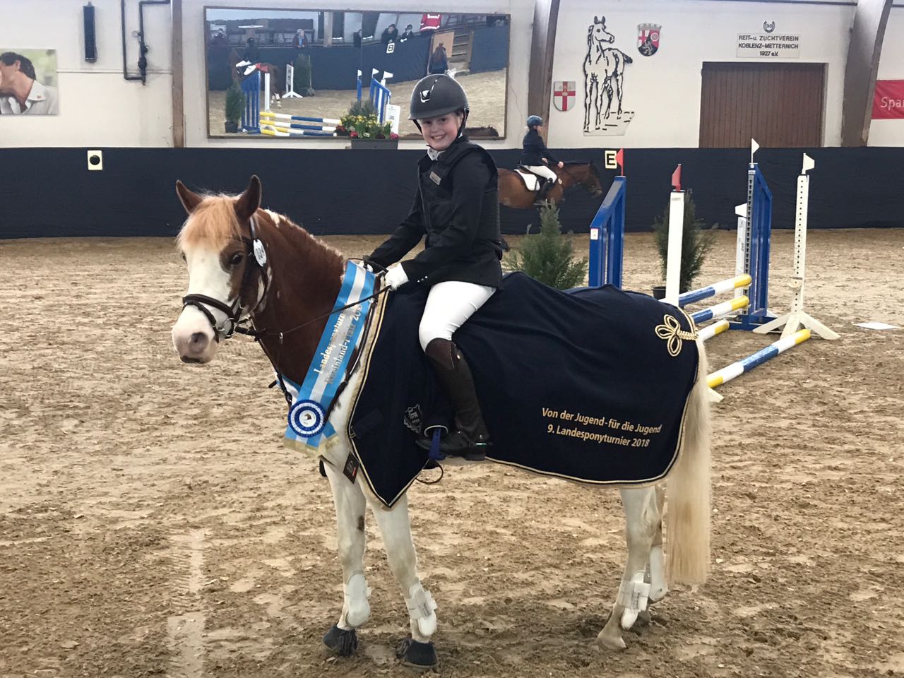 In Koblenz waren Anna Küttner u Summer Henkel in der Ponyklasse am Start . Anna brachte mit " Marienhofs twighlight" ( Toby ) den 2. Platz mit einer Wertnote von 7,7 in der A-Dressur nach Hause , und Summer hatte mit Miss Moneypenny gleich 2 Siege im Gepäck. Sie konnte in der E Dressur mit 7,4 u im Springreiterwettbewerb mit 7,5 überzeugen.