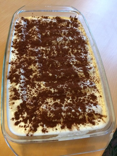 Insgesamt zwei Stunden lang waren wir beschäftigt mit Teig kneten, Soßen zubereiten, Gemüse schneiden, Salat waschen und den Nachtisch zuzubereiten. Die Lasagnen, vier an der Zahl, waren als erstes an der Reihe und es wurden Unmengen an Soße und Teig gebraucht um sie fertig zu stellen. Gleichzeitig schnippelten wir Gemüse für die zwei Salatschüsseln und letztendlich war das Tiramisu das große Highlight.